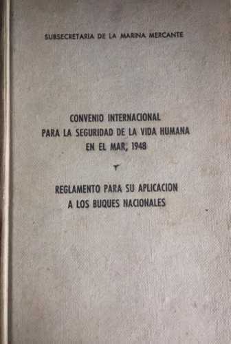 Convenio Internacional para la seguridad de la vida humana en el mar, 1948 y Reglamento para su aplicación a los buques nacionales. Editado por la dirección de General de Navegación, 1948. Ejemplar N* 0752. Libro en buen estado.