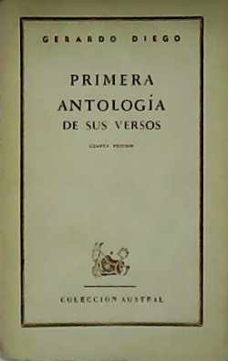Primera Antología de sus Versos de Gerardo Diego. Editorial Espasa-Calpe (1947). Primera edición A Ricardo Molinari. Edición en rústica dentro de la colección editorial Austral. 281 páginas. Otros libros de la misma categoría.